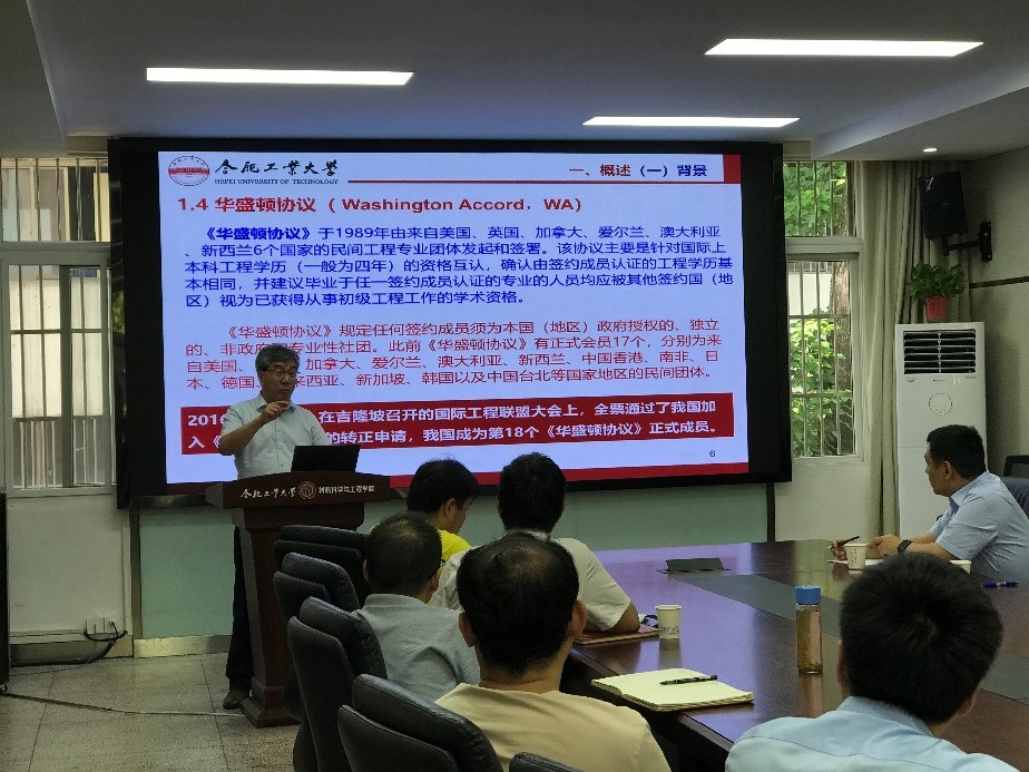 报告会上,程继贵教授结合自己对专业认证的理解和体会,介绍了工程教育专业认证的背景和理念,解读了专业认证标准,分析了认证申请过程中的重点和难点,并以正反两方面的例子说明在自评报告撰写时在专业培养目标、毕业要求、课程体系设置、课程目标达成评价、持续改进等方面需要注意的问题,最后对学院专业认证申请工作提出了宝贵的建议。