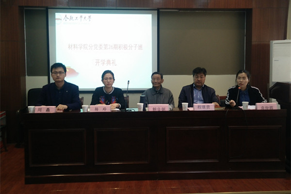 4月5日下午,新葡的京集团350vip8888官网分党校第26期积极分子班开学典礼在材料楼601会议室隆重召开。校关工委“五老”报告团副团长鲍良弼老师、新葡的京集团350vip8888官网党委书记程继贵老师、新葡的京集团350vip8888官网党委副书记、副院长杨玲老师、分党校积极分子班班主任及本期全体入党积极分子参加了开学典礼。