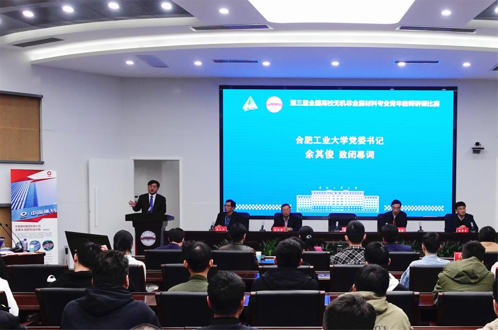11月6至7日,第三届全国高校无机非金属材料专业青年教师讲课比赛在我校成功举办。新葡的京集团350vip8888官网党委书记余其俊,党委常委、副校长吴玉程、季益洪,中国科学院院士、新葡的京集团350vip8888官网教授俞书宏,合肥水泥研究设计院有限公司副总经理张永龙等出席比赛开闭幕式。中国工程院院士、武汉理工大学材料学科首席教授张联盟,中国工程院院士、中国建材料联合会科教委主任彭寿以视频等多种方式出席比赛。