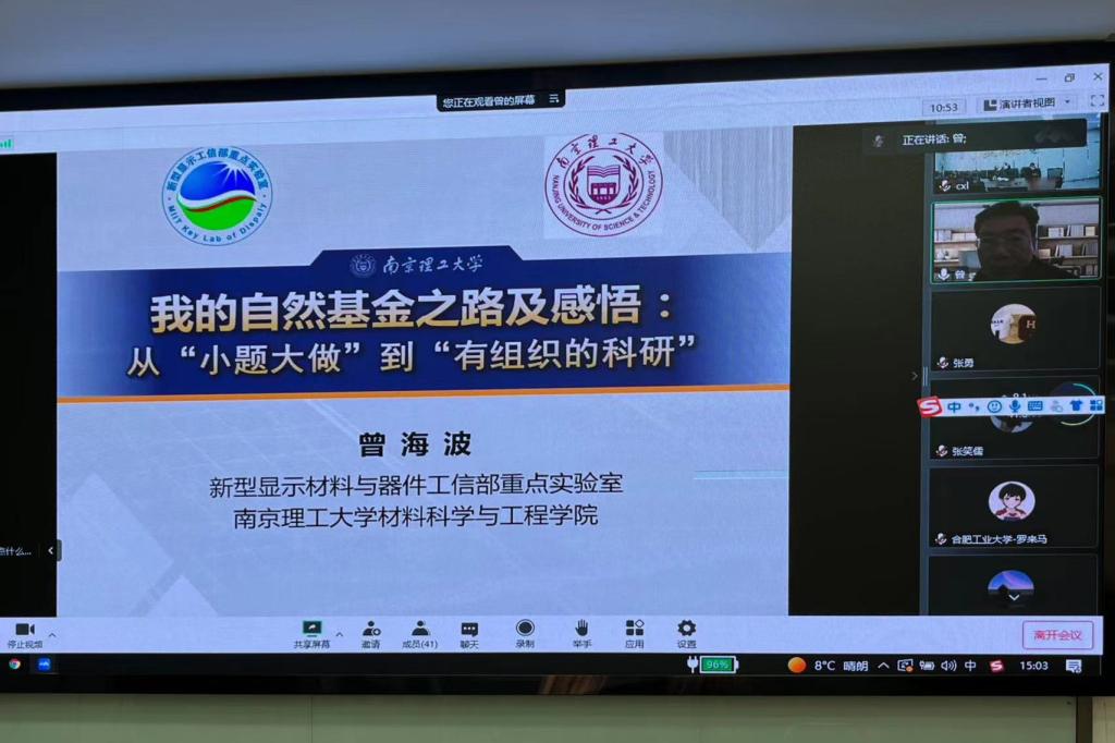 12月14日下午,南京理工大学新葡的京集团350vip8888官网院长曾海波教授应邀以在线会议的形式为新葡的京集团350vip8888官网全体教师做了题为《我的自然基金之路及感悟》的专题报告。报告由新葡的京集团350vip8888官网副院长罗来马主持,新葡的京集团350vip8888官网副院长周如龙教授及学院近百名教职工参加了报告会。