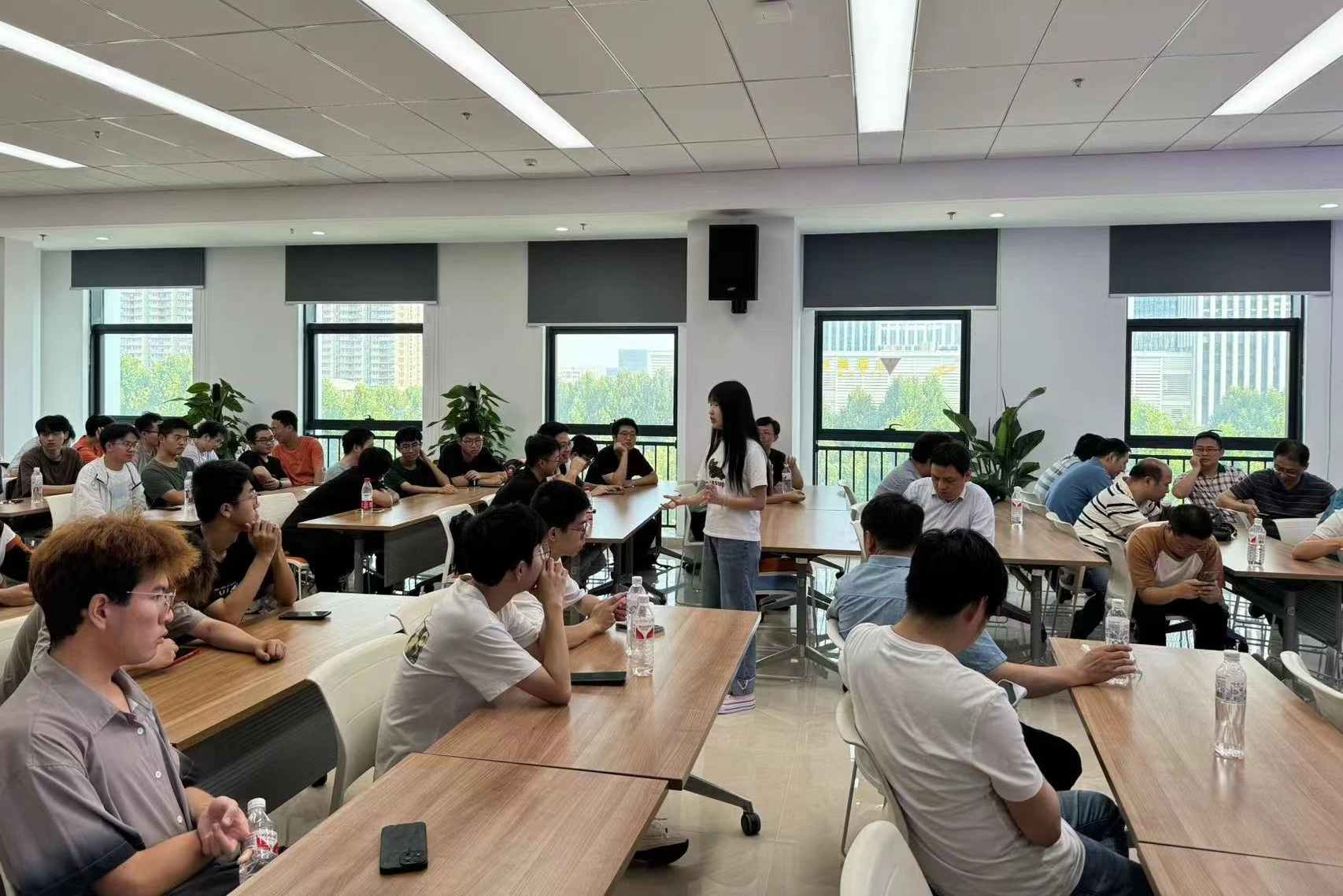最后,一行人在合肥创新院会议室举行了教师学生座谈会,会议由周如龙副院长主持。会议采取教师与学生、学生与学生相互交流的模式,从本专业的课程设置、学习内容、就业前景和考研去向等方面进行了热烈研讨。会议结合本次创新创业主题的参观实例,为学生在本专业的学习和发展提供了参考和借鉴,也加强了同学们之间的交流与合作,为未来的学习和规划奠定了坚实的基础。本次主题党日活动也是党建引领促发展的重要体现,为我系的专业建设和学风建设提供了有力保障。