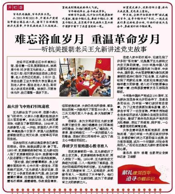 在庆祝建党100周年之际,新葡的京集团350vip8888官网多措并举,认真组织师生深入开展党史学习教育下系列活动。3月31日上午,金属材料工程19-3班和材料成型及控制工程20-1班团支部在芙蓉社区的协同下,开展慰问老兵活动,为这些曾在战场上奉献青春的老兵们送去关爱和问候,在此过程中聆听红色党史故事,探寻建党初心。