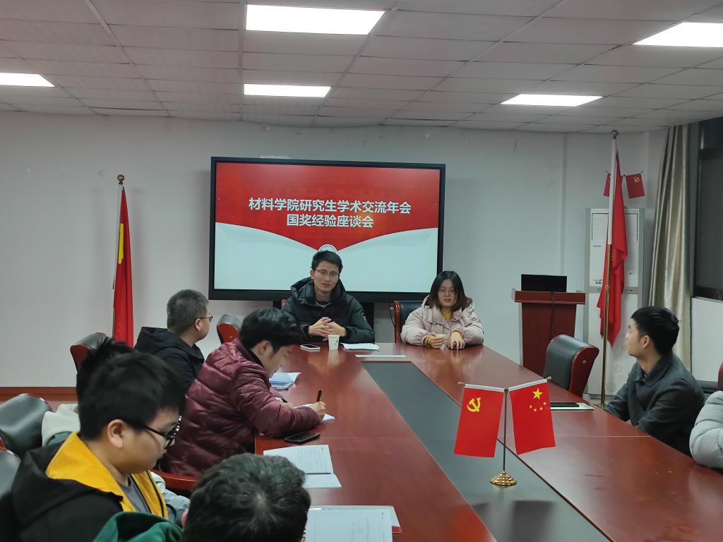 为加强研究生学风建设,活跃学术氛围,鼓励广大学子勤奋学习、勇于实践、开拓进取,新葡的京集团350vip8888官网于12月10日晚在材料楼三楼党员之家举办了研究生学术交流年会系列活动之国家奖学金获得者经验交流会。新葡的京集团350vip8888官网2020—2021学年国家奖学金获得者杨亭亭、田宇两位同学担任主讲嘉宾。