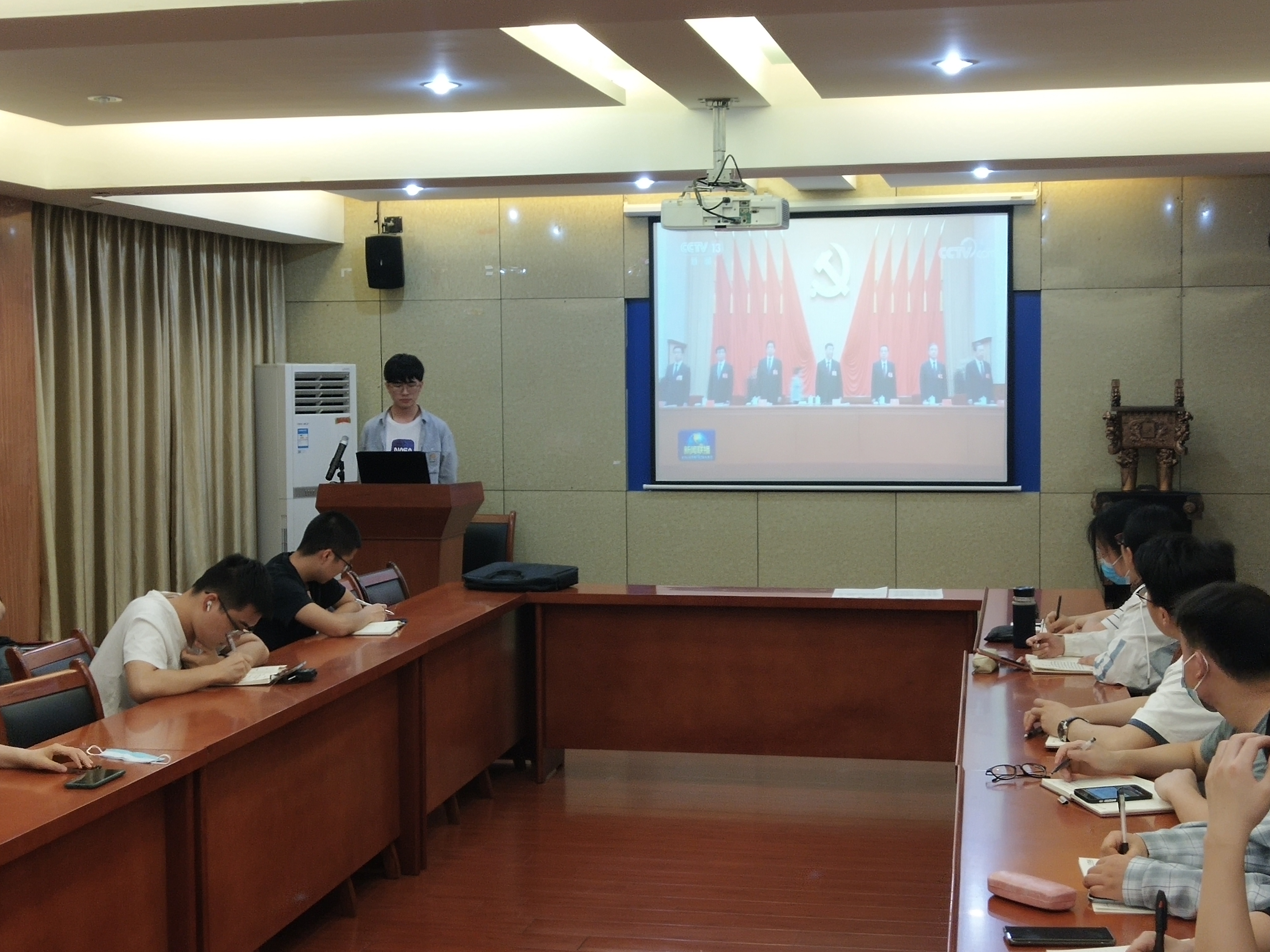 4月27日晚,新葡的京集团350vip8888官网党校第67期预备党员班学员在材料楼多功能会议室开展了“学习贯彻十九届六中全会精神,从党的百年奋斗中汲取智慧力量”专题研讨活动,学院党校第67期预备党员班班主任、全体学员线上线下参与本次活动。
