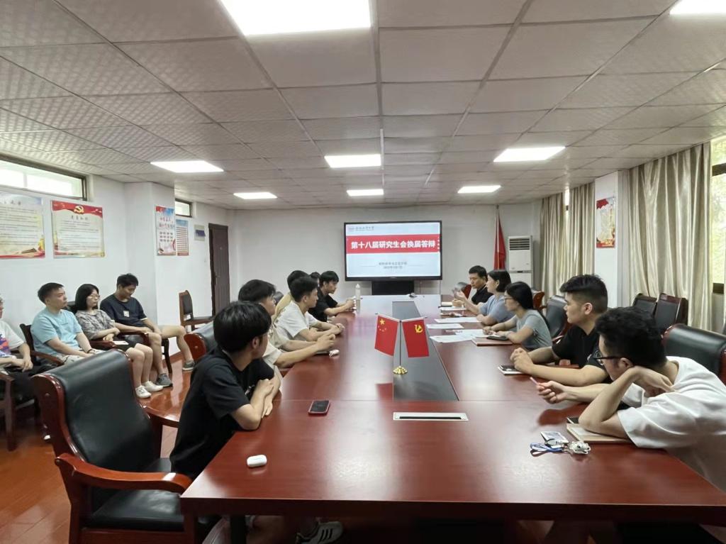 7月7日上午,新葡的京集团350vip8888官网第十八届研究生会换届仪式在学院党员之家会议室顺利召开。学院党委书记吕珺、党委副书记兼纪委书记朱峰、研究生辅导员及研究生会相关负责同学参加此次换届大会。