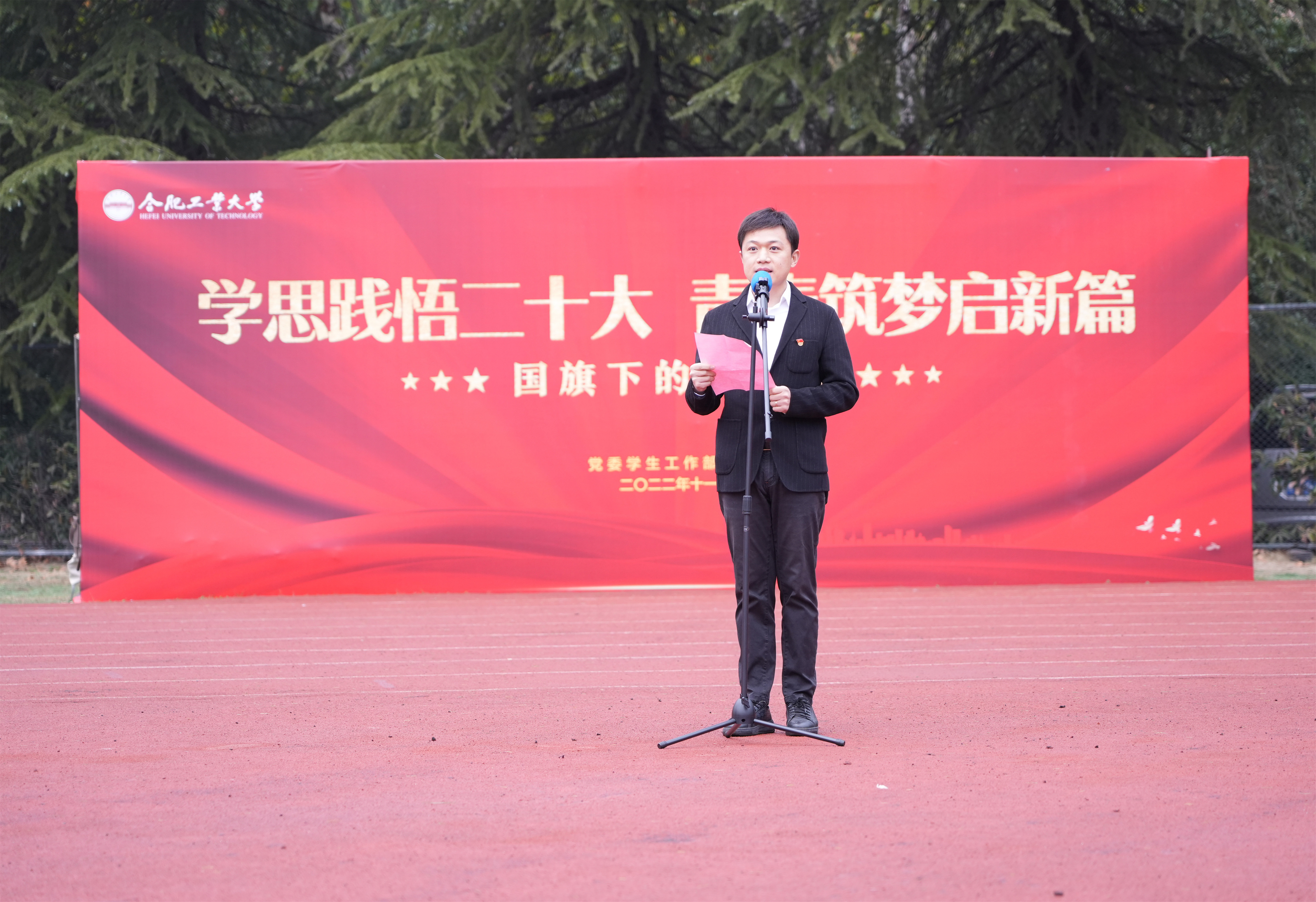 11月14日清晨,新葡的京集团350vip8888官网在屯溪路校区举行了以“学思践悟二十大 青春筑梦启新篇”为主题的升旗仪式暨国旗下的思政课主题教育活动。学院相关负责人、2019级、2020级全体本科生和研究生参加活动。
