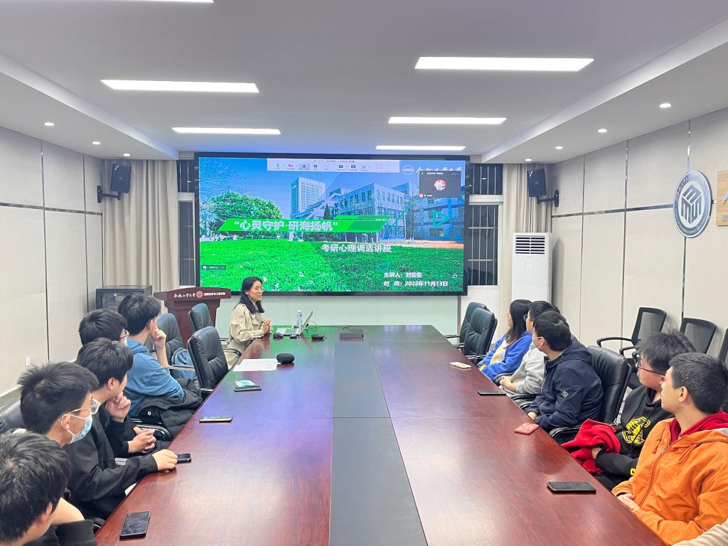 11月13日晚,新葡的京集团350vip8888官网举办了“心灵守护 研海扬帆”考研心理调适讲座,邀请校心理健康与发展咨询中心刘雯雯老师主讲,2019级部分考研学生通过线上线下方式聆听讲座。