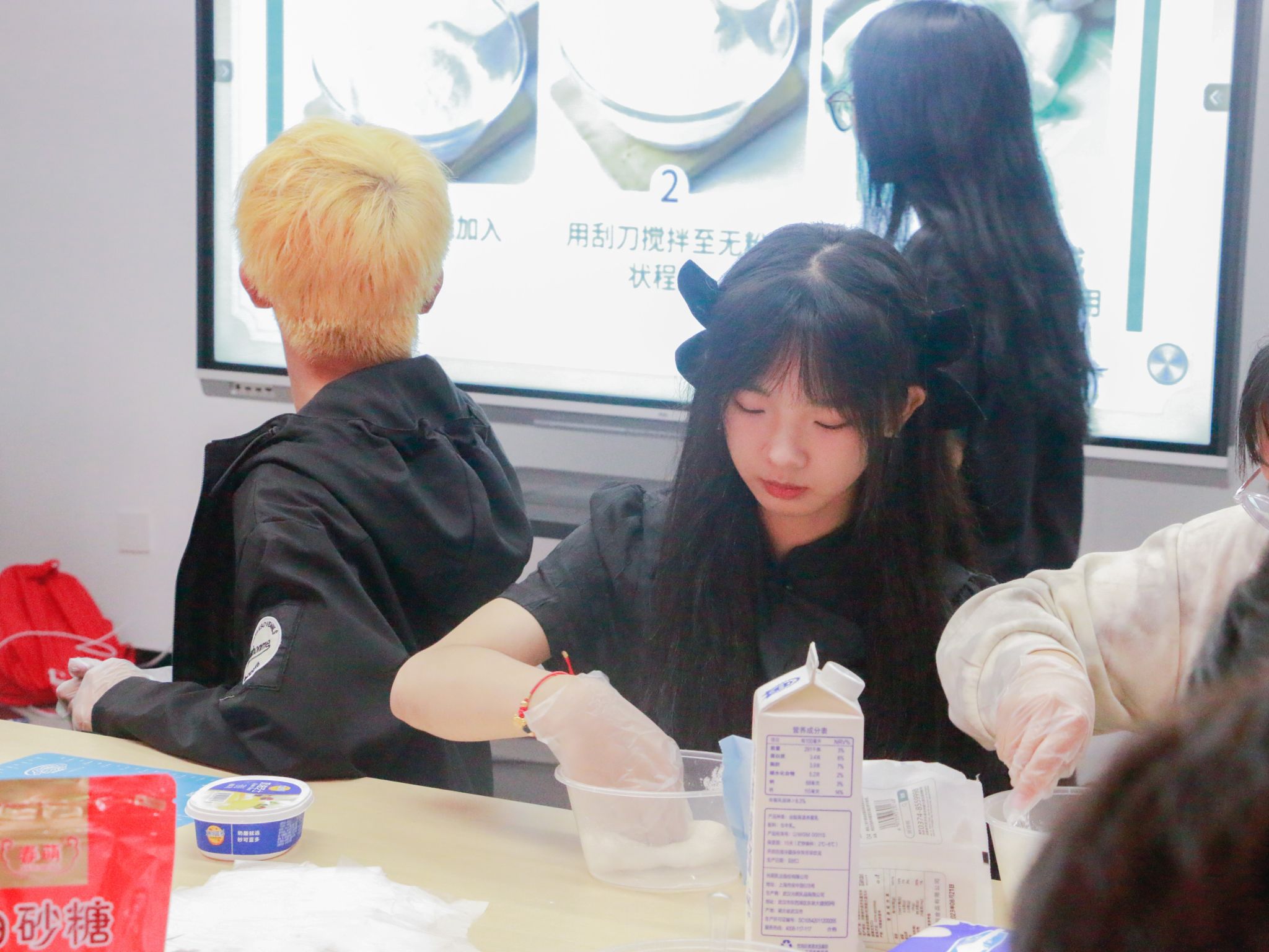 活动中,在工作人员的带领下同学们一起学习了中秋节相关知识以及冰皮月饼的制作方法。活动准备了各种月饼馅料,预拌粉,牛奶等用于制作冰皮月饼的原料,同时准备了各种模具共同学们制作不同外观的月饼。制作开始前工作人员细心教学制作冰皮月饼的步骤,制作过程中也有工作人员耐心地辅助同学们完成制作,最后,每一个同学都做出了自己的冰皮月饼。