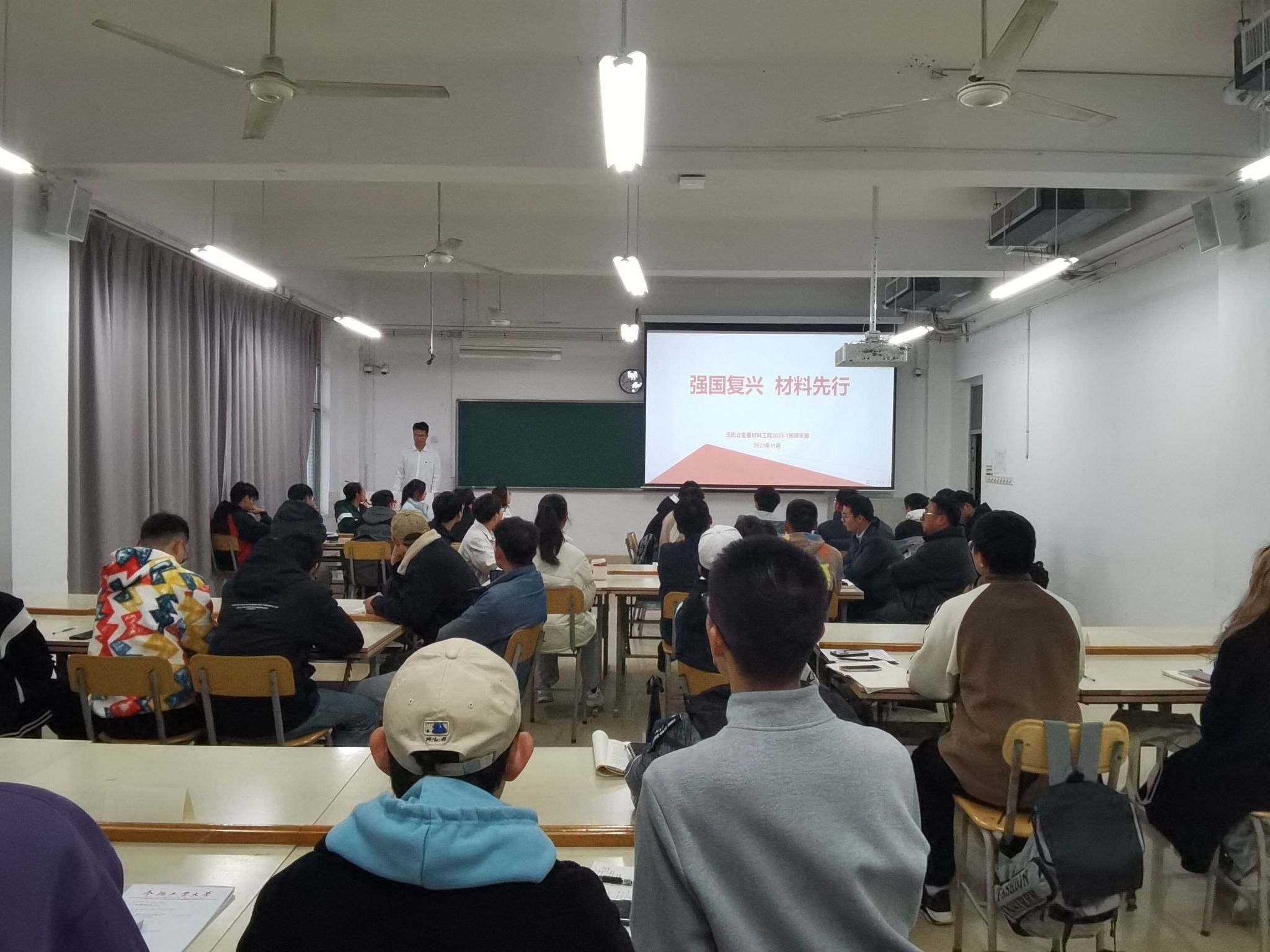 本次活动主题为“强国复兴,材料先行”。活动中,团支部书记张睿元同学主持,班长兼支部副书记刘本凯作为领学人分享对“强国复兴”的理解,从时代使命、国家发展、强国使命三个方面来论述当代青年的在强国建设中的时代责任和历史使命。各学习小组针对学习内容从大学生在强国复兴中如何做分享了各自的观点,学院2022级研究生韦国宣做“强国复兴,材料先行”主题宣讲。他首先介绍了前沿新材料发展情况,进而分析当前新材料在国家发展、社会生活中的重要地位;随后他根据个人竞赛经历从材料专业的专业前景和就业去向入手,细致讲述了作为材料学子如何为强国复兴献力。