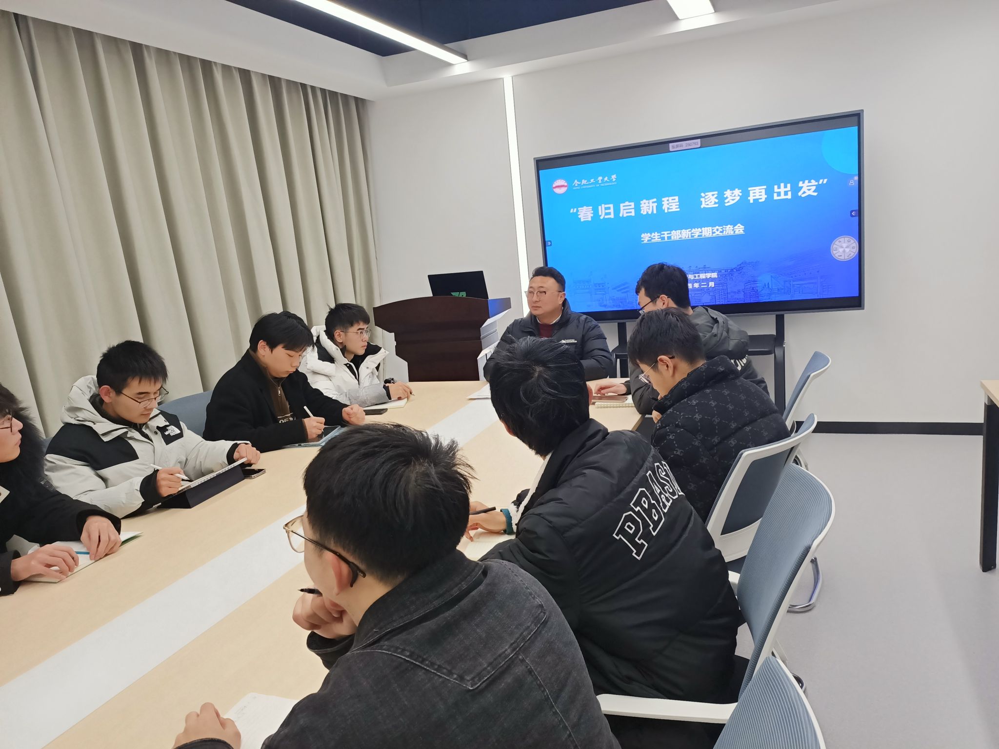 2月26日晚,新葡的京集团350vip8888官网组织2023级主要学生干部于翡翠湖校区四号楼学生社区会议室召开“春归启新程,逐梦再出发”学生干部新学期工作交流会。