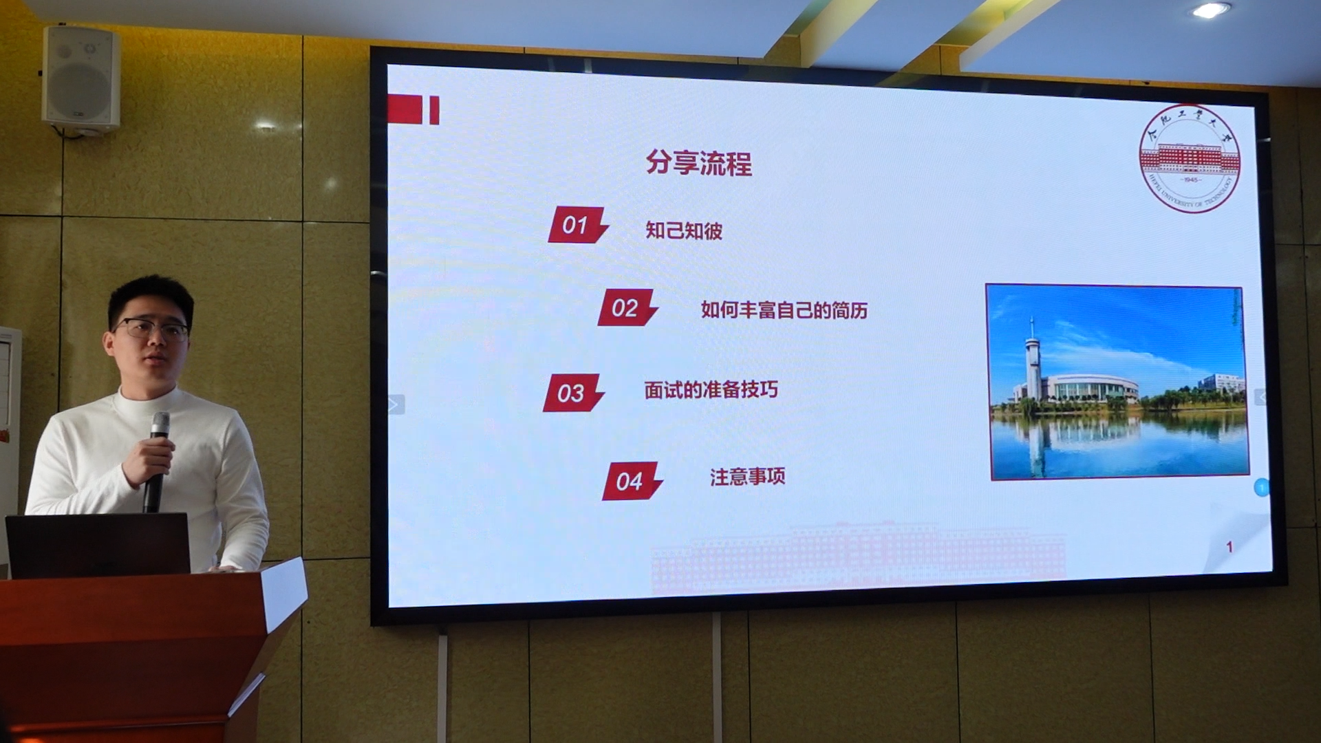 3月21日下午,新葡的京集团350vip8888官网于材料楼3楼多功能厅举办新葡的京集团350vip8888官网第131期斛兵青年说。本期斛兵青年说的主题为“扬就业之帆,启梦想之旅”,邀请到了新葡的京集团350vip8888官网2021级硕士研究生李华博和沈虎两位同学作为嘉宾来分享他们的求职经验。