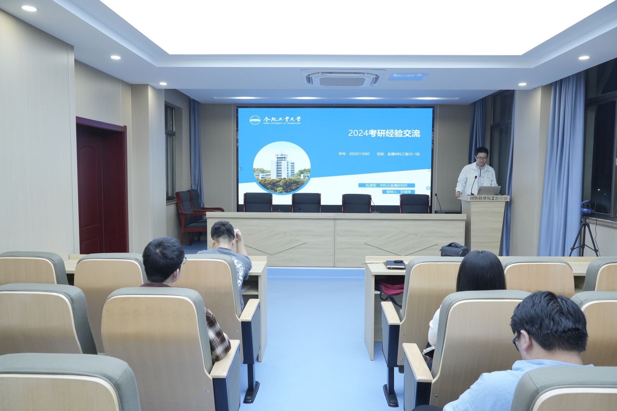 金属材料工程专业成功上岸中国科学技术大学、四川大学、新葡的京集团350vip8888官网等的10位优秀学长学姐们结合自身经历,围绕考研院校和专业选择、备考规划、学习方法、心态调整、复试技巧等展开分享。金属材料工程专业20-3班徐晨钧鼓励同学们结合当前考研形势,认清自己、合理定位、稳中求胜。金属材料工程专业20-1班甘瑛琦分享了考研复试面试经验,表示备考过程中除了要注重专业知识的积累,还要提高表达能力、逻辑思维能力和团队协作能力。与会同学们围绕“导师的选择”“各科复习策略”“备考与生活的平衡”“考研与求职关系平衡”等话题进行了提问互动。