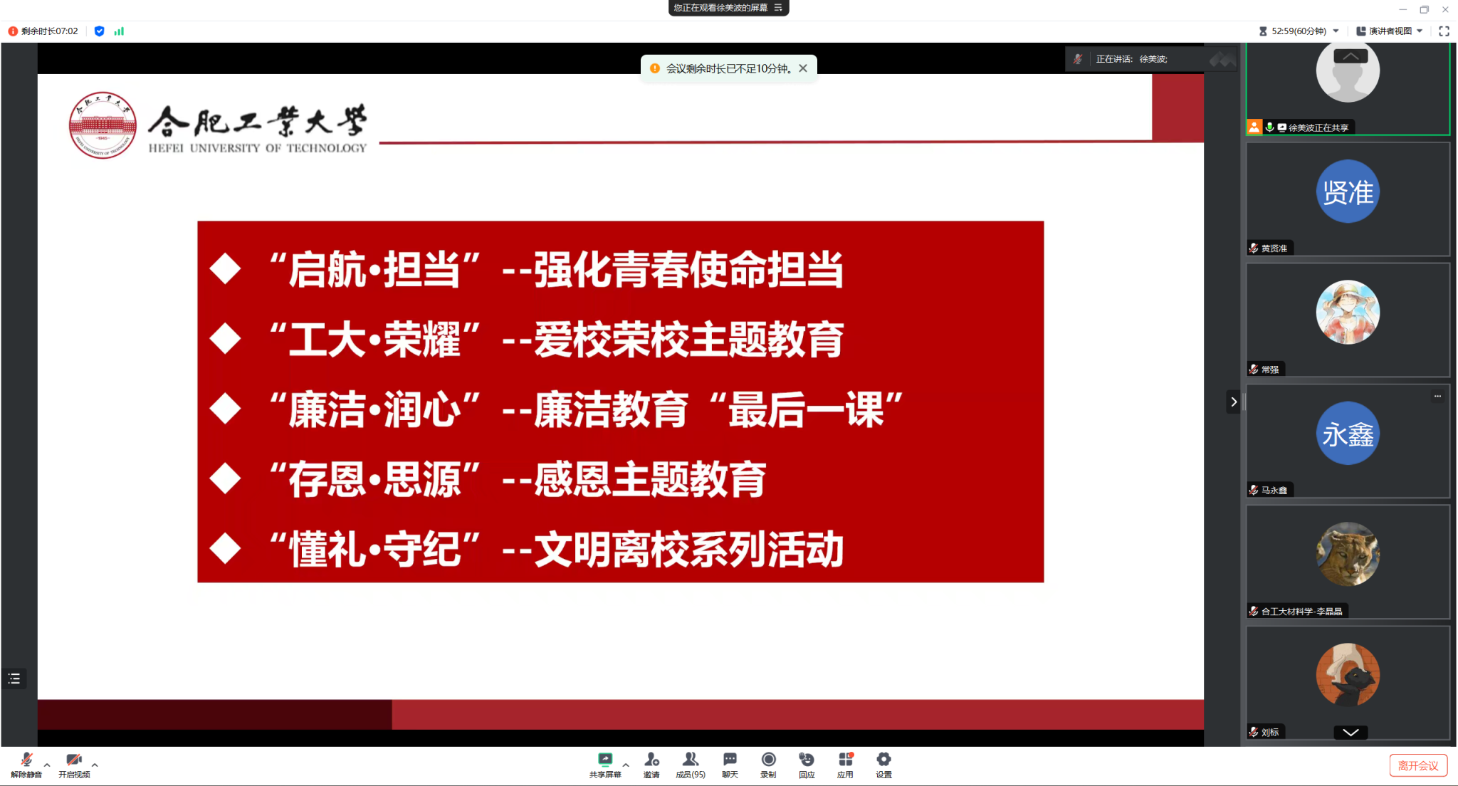 6月5日,新葡的京集团350vip8888官网学院召开“青春启新程,奋楫勇前行”主题毕业生年级大会,研究生辅导员和全体2024届毕业生线上参加。
