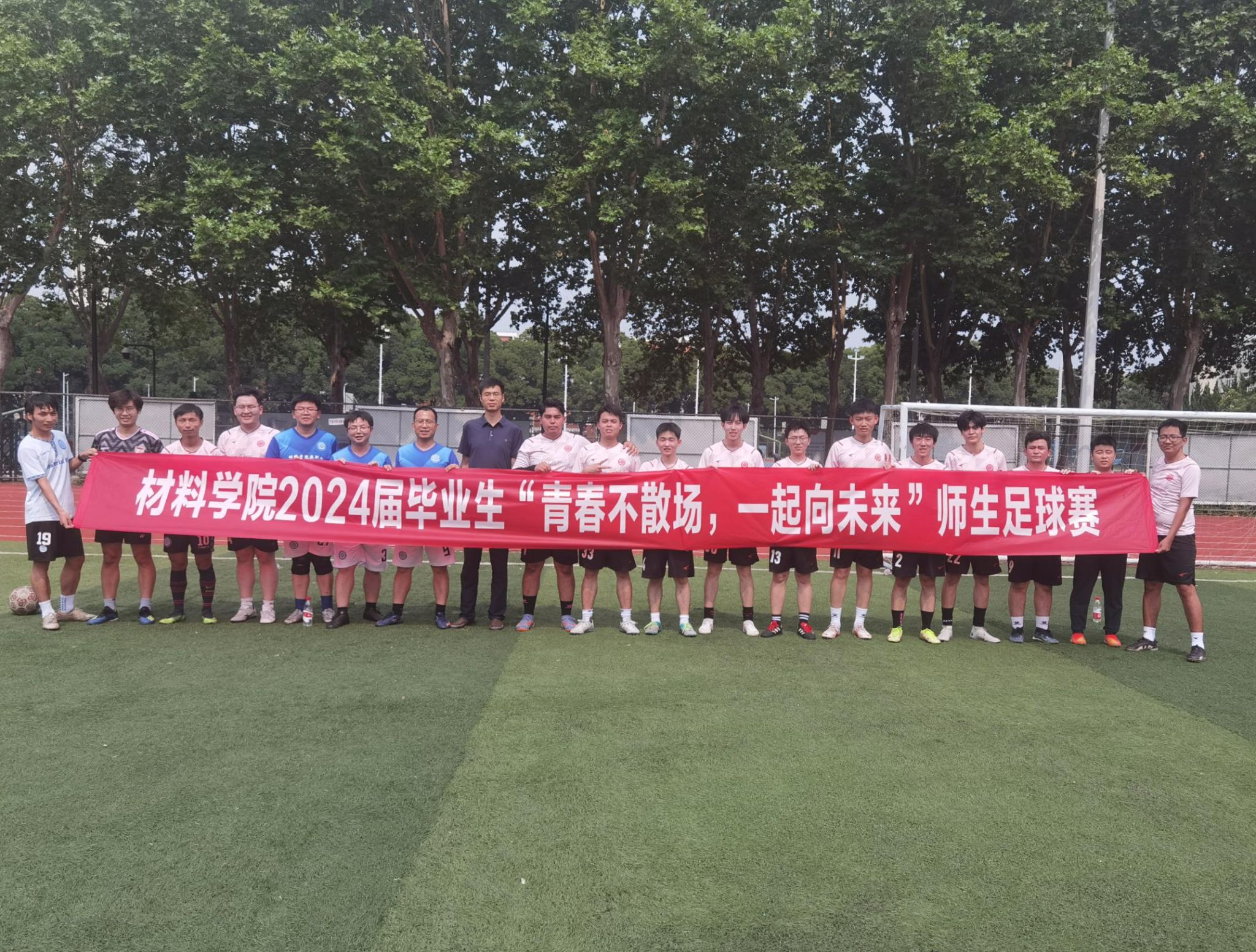 6月8日上午,新葡的京集团350vip8888官网2024届毕业生“青春不散场,一起向未来”师生足球赛在屯溪路校区足球场举办。学院教工足球队、毕业班学生代表参加本次活动。