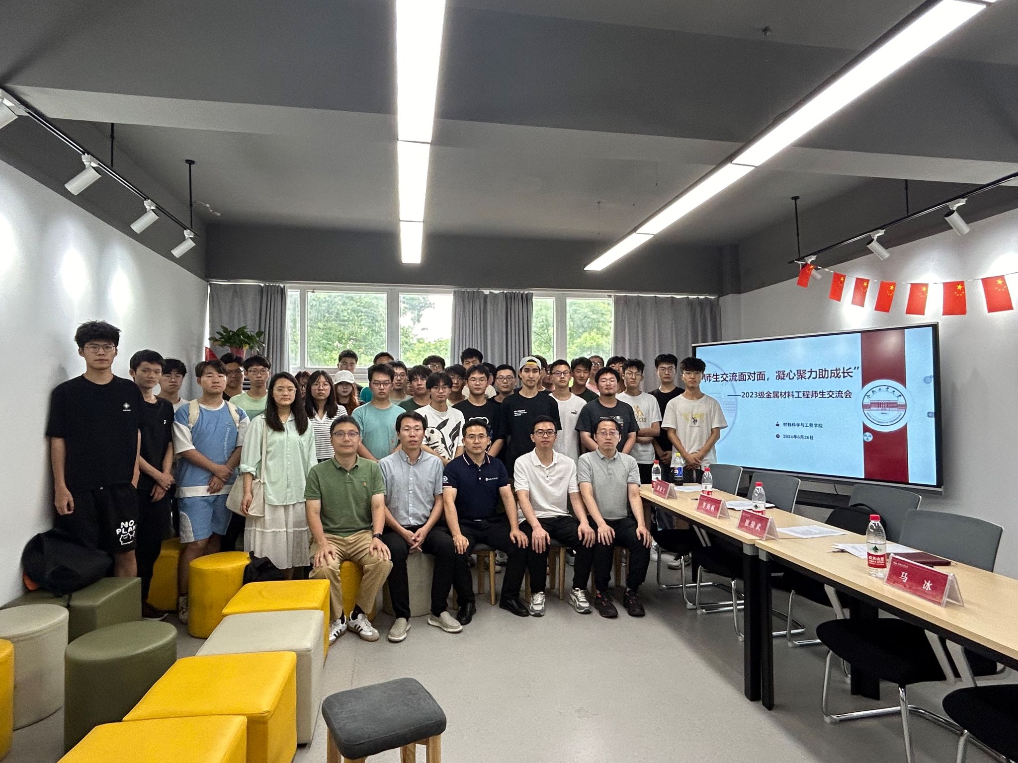 为进一步加强低年级学生专业认知,增强师生交流,6月26日下午,新葡的京集团350vip8888官网于翡翠湖校区四号楼学生社区开展“师生交流面对面,凝心聚力助成长“2023级金属材料工程师生交流会,金属材料工程系全体教师与2023级金属材料工程专业全体大一学生面对面展开交流。