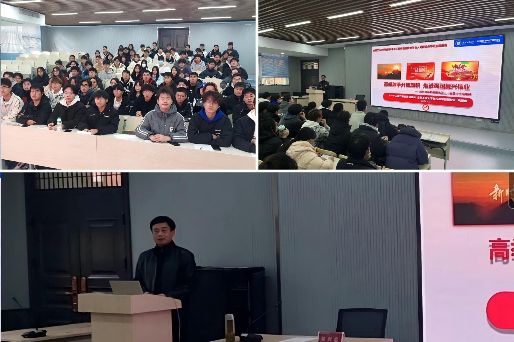 12月11日下午,为进一步加强对入党积极分子的培养教育,新葡的京集团350vip8888官网举行分党校第72期大学生入党积极分子培训班第三次专题党课。十一、十二届安徽省政协委员、新葡的京集团350vip8888官网党校原常务副校长姚跃传为积极分子作了题为《高举改革开放旗帜,推进强国复兴伟业——深刻领会和把握党的二十届三中全会精神》的精彩报告。