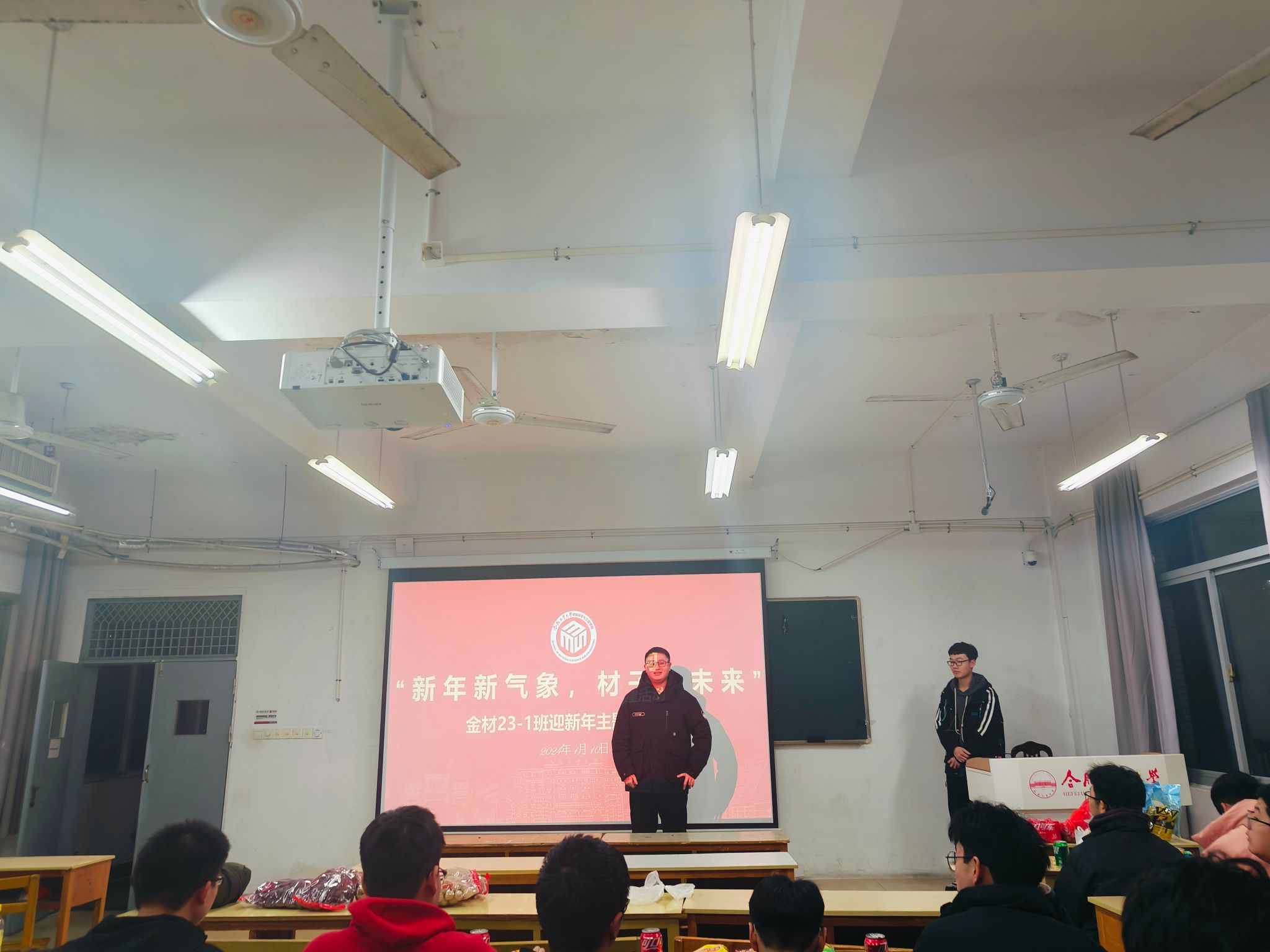 为庆贺新年到来,巩固班级团结,缓解期末压力,1月10日晚,新葡的京集团350vip8888官网组织金属材料工程23-1班于翠七教302举办了主题为“新年新气象,材子向未来”迎新年主题团建活动,金属材料工程23-1班40名同学及班主任谢思瑶参与本次活动。