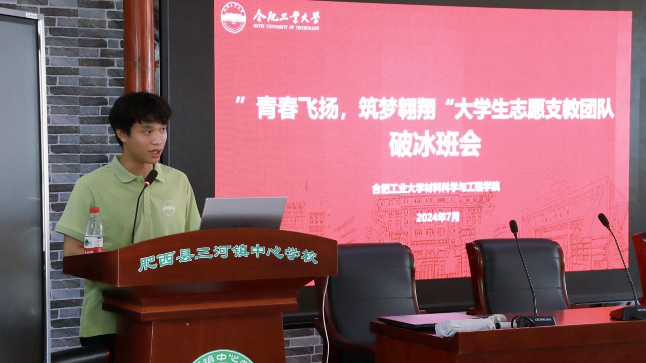 为合力推动乡村教育振兴,缓解城乡“第二课堂”教育不平衡问题,满足农村少先队员对科学、艺术等社团的需求,丰富乡村小学生课后延时服务内容,探索大学生对接小学生暑期支教新模式,7月8日上午,肥西县三河镇中心学校举办新葡的京集团350vip8888官网“青春飞扬,逐梦翱翔”大学生志愿支教团队支教活动启动仪式。