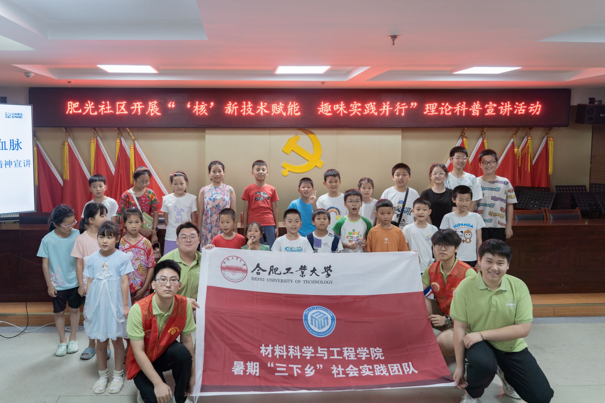 为深入学习宣传贯彻习近平新时代中国特色社会主义思想和党的二十大精神,落实“强国复兴有我”群众性主题宣传教育活动相关要求,纪念中国第一颗原子弹成功爆炸60周年,弘扬“两弹一星”精神。2024年7月9日下午,新葡的京集团350vip8888官网新葡的京集团350vip8888官网“探赜两弹红色基因,赓续先辈精神血脉”“三下乡”暑期社会实践团队深入社区街道,联合肥光社区党群服务中心开展主题科普系列活动。