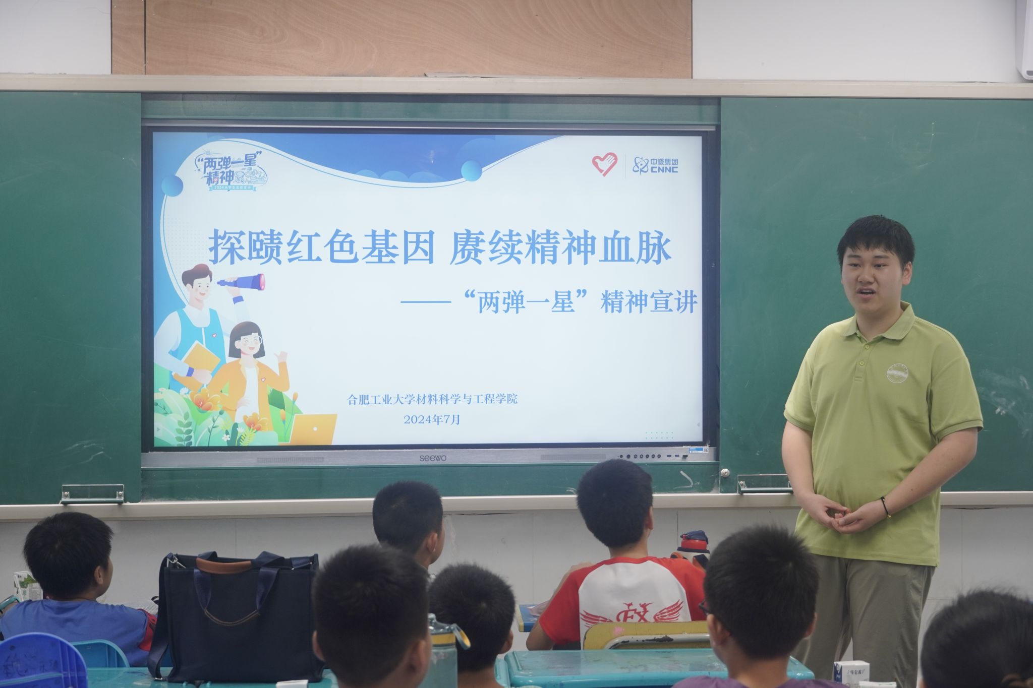7月13日,新葡的京集团350vip8888官网新葡的京集团350vip8888官网“探赜两弹红色基因,赓续先辈精神血脉”“三下乡”暑期社会实践团队联合新葡的京集团350vip8888官网新葡的京集团350vip8888官网“青春飞扬,筑梦翱翔”大学生志愿支教团队,赴肥西县三河镇政府中心学校开展科普宣讲思政课。课程向学生们普及“两弹一星”精神内涵,引导学生们树立正确的价值观和人生观,厚植爱国情怀。