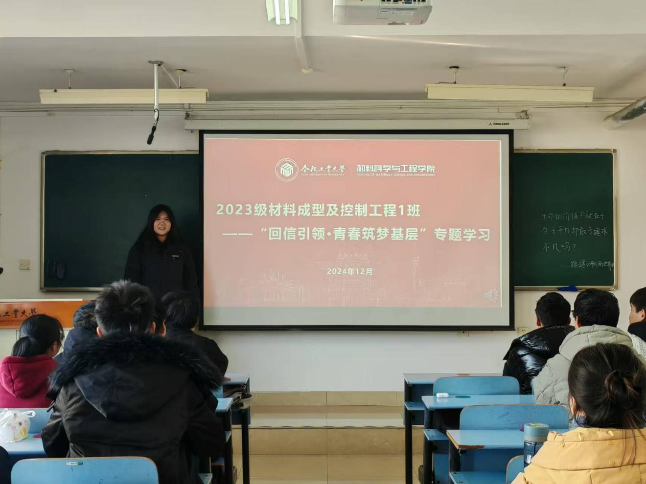 12月24日上午,新葡的京集团350vip8888官网组织材料成型及控制工程2023级1班团支部开展了主题为“回信领航·青春筑梦基层”的特色团支部活动。支部青年全部参与了本次团日活动。