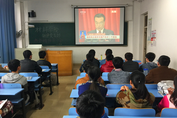 为深入学习贯彻“两会”精神,3月5日上午9时,新葡的京集团350vip8888官网新区党支部在翡翠湖校区六教107组织开展了“两会”精神学习交流会。学院新区所有党员、入党积极分子共同观看了全国人大第十二届四次会议开幕式,并结合大学生实际就“两会”精神展开交流讨论。