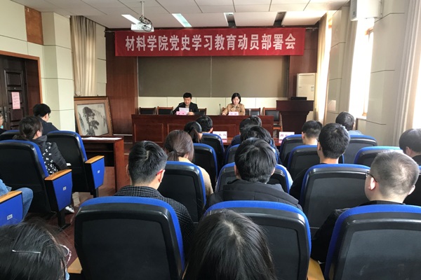3月25日下午,新葡的京集团350vip8888官网在材料楼601报告厅召开党史学习教育动员部署会,学院党委书记吕珺作动员讲话并部署工作。