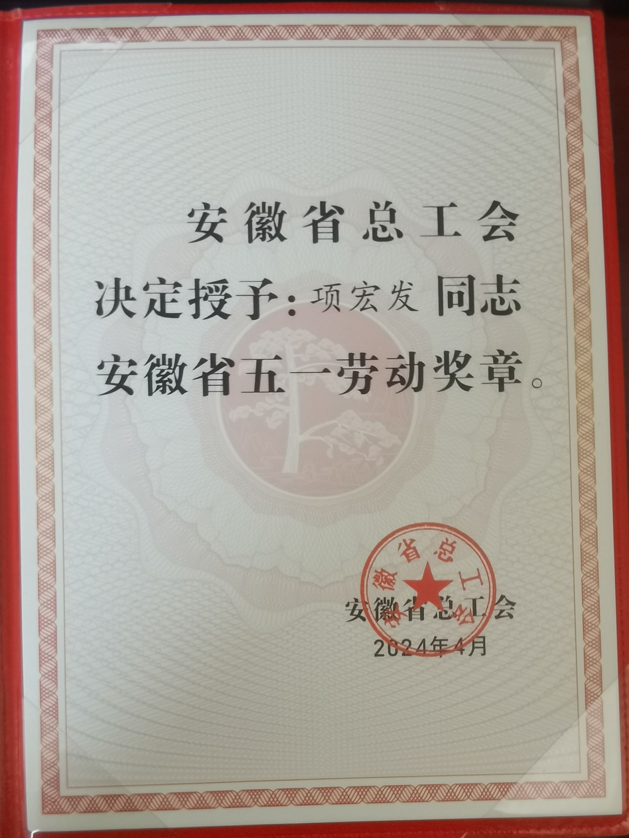 4月28日,2024年安徽省庆祝“五一”国际劳动节大会举行,新葡的京集团350vip8888官网项宏发教授被授予“安徽省五一劳动奖章”。